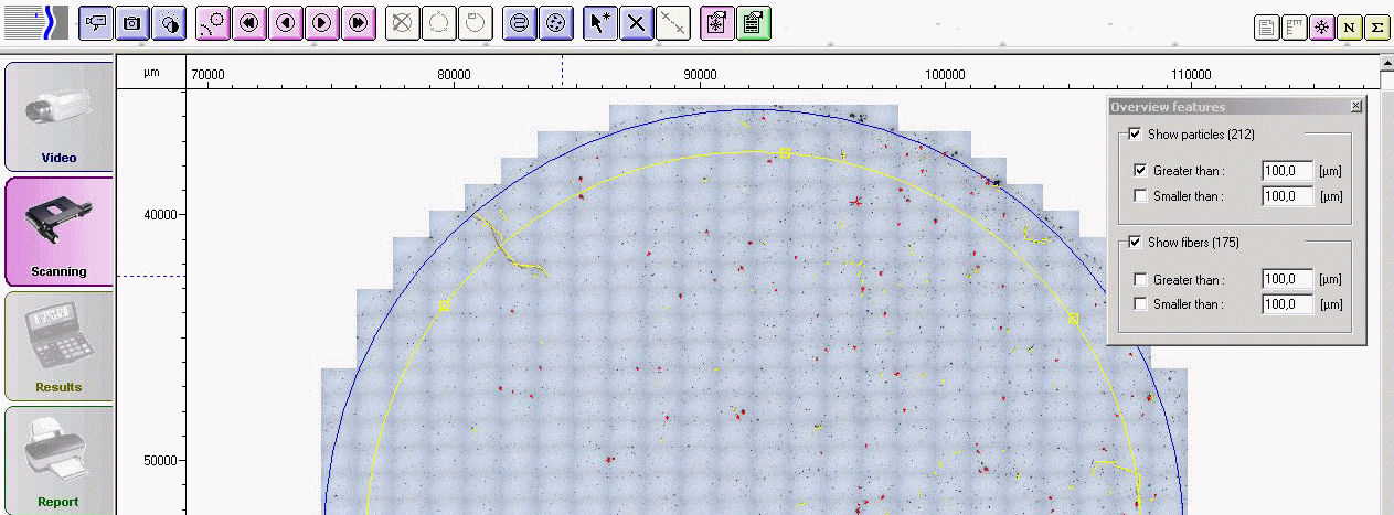 Automatic connection of particles/fibers that cover more than one field of view. The only system with perfect conformance to ISO standards.